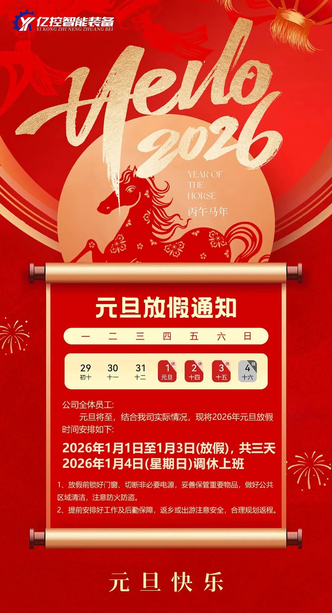 元启新程,共赴亿控 | 2026年元旦放假安排正式发布!