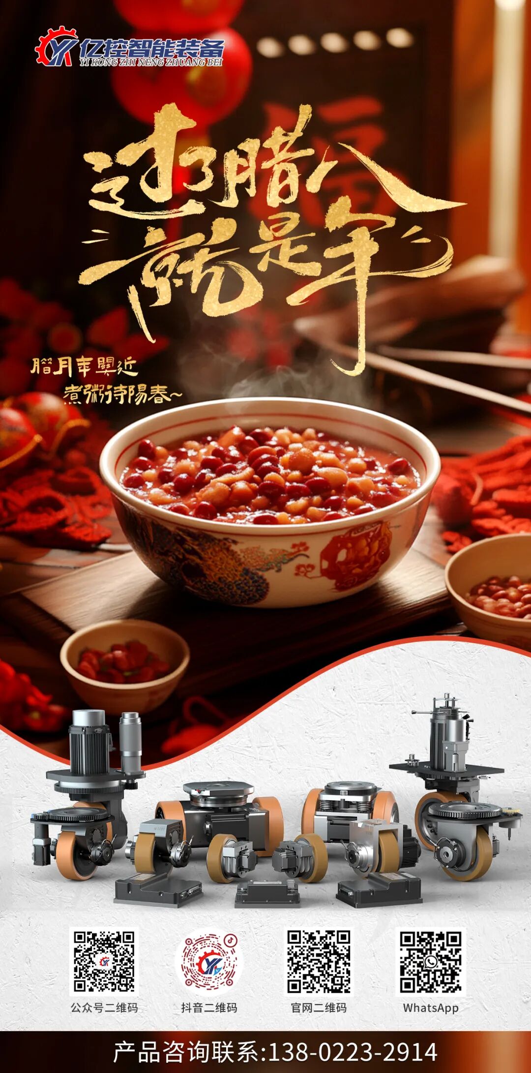 粥香漫溢腊月天,腊八佳节至,年味亦渐浓。这个承载着“腊日祭祖、逐疫祈福”传统寓意的节日,一碗浓稠暖粥,既是岁末的烟火沉淀,也藏着平安顺遂的深切期许。值此佳节,亿控智能向全体员工、各位客户伙伴,致以最真挚的腊八祝福!岁末添暖,情谊相伴。感恩每一位亿控家人的并肩坚守,以专业与汗水筑牢前行根基;感恩每一位客户伙伴的信任托付,与我们共赴行业新程。致亿控家人们愿这碗腊八暖粥,驱散冬日疲惫,沉淀一年收获。祝大家腊八安康,万事顺意,新岁皆有可期!致客户伙伴们粥香致远,情谊绵长。祝各位伙伴事业如粥醇厚,业绩节节攀升,腊八吉祥,岁岁安康!未来我们仍将以优质产品与服务,与您携手共赢。腊八已至,新春渐近。亿控智能愿与全体员工、客户伙伴一同,借这碗暖粥积蓄力量,共赴丙午马年新光景!